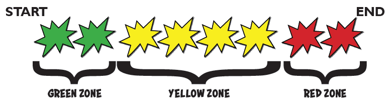 While this means you are closer to getting Out (which would take you out of the current scene, limiting your capacity to participate and requiring a scene to recover), damage makes you proceed through the Green, Yellow, and Red zones.