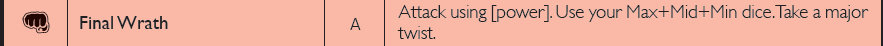 When you are in the Yellow Zone, you can use Yellow powers, which are not only more powerful than Green zone ones, they also let you do more things with an given action. This means as you take damage over a session, the faster you wrap up encounters.